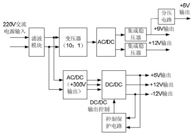 在實(shí)際應(yīng)用中,單路輸出的電源模塊有時(shí)無法滿足一些特殊設(shè)備的要求,這些設(shè)備一般要求電源要有雙路、三路甚至多路輸出的功能。下面介紹一種電源模塊多路穩(wěn)壓的設(shè)計(jì)方案,說明ACDC電源模塊中的整流電路、DCDC電路、保護(hù)電路等工作原理及設(shè)計(jì)部分。