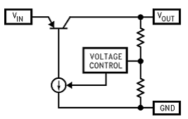 當(dāng)Vout偏小時(shí),基極的電流將增大增加驅(qū)動(dòng)能力,把電壓上拉。當(dāng)Vout偏大時(shí),基極電流將減小,從而減小輸出,達(dá)到穩(wěn)定電壓的目的。其優(yōu)點(diǎn)是成本低、噪音小。缺點(diǎn)是效率低、輸出電流小,只能使用在降壓的場(chǎng)合。