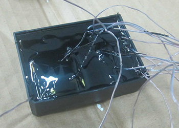 電源模塊多數(shù)是灌封類產(chǎn)品,要想測試內(nèi)部元器件的溫升,需要在裸板套裝外殼灌封前,將熱電偶布到內(nèi)部關(guān)鍵元器件表面,再進(jìn)行灌膠。