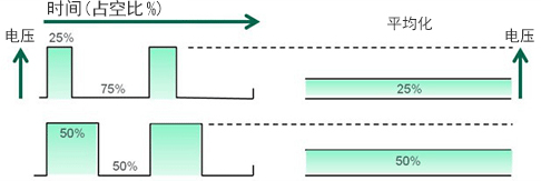 上圖是利用代表性的控制方式PWM(Pulse Width Modulation:脈沖寬度調(diào)制)方式加以降壓的原理。PWM是指讓周期(頻率)保持恒定,調(diào)整ON和OFF的時間比,也就是占空比來進行控制的方法,能運用在開關(guān)電源、電源模塊等多種應(yīng)用上。采用PWM時,經(jīng)由開關(guān)將DC電壓轉(zhuǎn)換成達到必要占空比的AC后,接著再進行整流回到DC,以取得想要的DC電壓。例如經(jīng)由開關(guān)將100VDC轉(zhuǎn)換成周期25%ON、剩下OFF的25:75的AC。接著,整流-平滑該AC,也即將其均勻化后轉(zhuǎn)換成DC,電壓就會轉(zhuǎn)換成相當(dāng)于25%的25VDC。