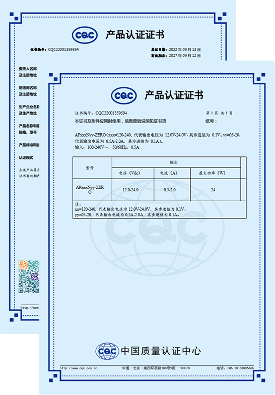 熱烈祝賀我司AP120N20-Zero、AP150N16-Zero、AP200N12-Zero、AP240N10-Zero等型號AC-DC電源模塊順利通過CQC認(rèn)證,提高了產(chǎn)品競爭力和企業(yè)形象,增強客戶對產(chǎn)品的信心。